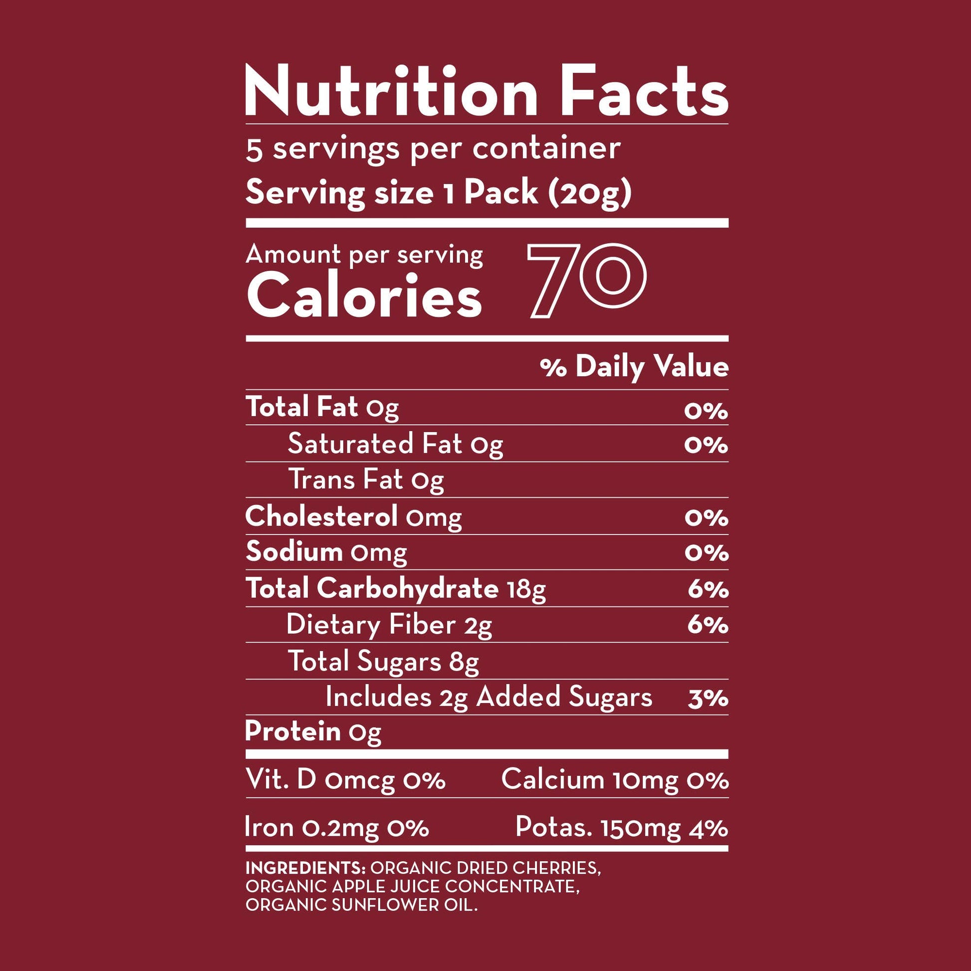 Tangy and zesty, all natural Sunny Fruit Organic Dried Tart Cherries are an ideal snack for those who would like to maintain a healthy diet. Meticulously sun-dried for ideal sweetness, these organic dried cherries are an excellent source of dietary fiber, antioxidants, beta carotene, potassium, and magnesium all of which help boost your immunity, promote healthy digestion, and support your nervous system.